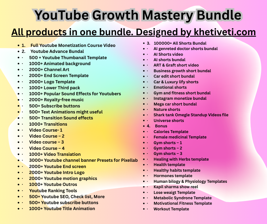 The YouTube Growth Mystery Bundle (₹999) is a self-paced, ready-to-use digital roadmap designed for creators who want to grow organically and reach monetization goals on their own. It includes the exact strategies our premium clients use—without requiring any direct service or intervention from our team.